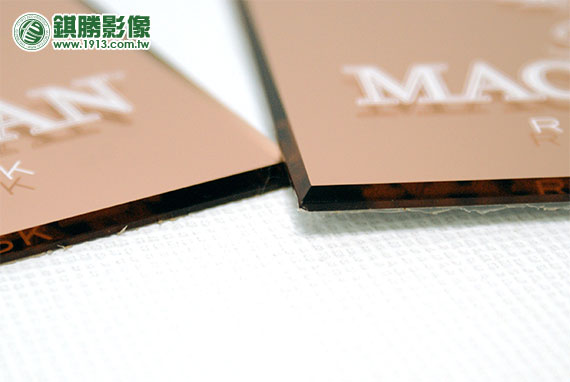 詳細說明:利用壓克力經後加工後產生特殊的古銅色,再於正面單印白色LOGO,使品牌整體形象更鮮明,數量不限,一件即可印。