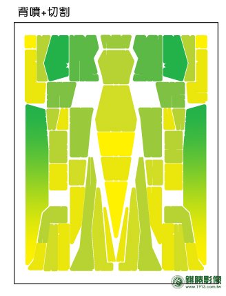 製作方式:雙面噴_正噴,彩印+局部白墨、背噴,彩印+切割成型