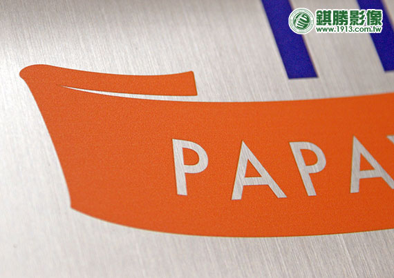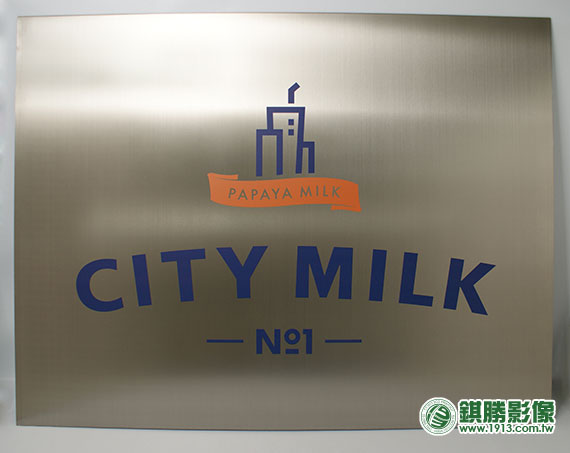 詳細說明:設計師使用不鏽鋼底材作為新一代店面的視覺小招牌,不僅可全彩局部印刷形成摟空字效果(圖右上 / 橘色),還可同時保留金屬髮絲紋路唷!另外,因UV直印的油墨具有半透性,故此案例有印刷色彩的部分皆有印白墨襯底,使淺色更為飽和顯眼!數量不限,一件即可印!